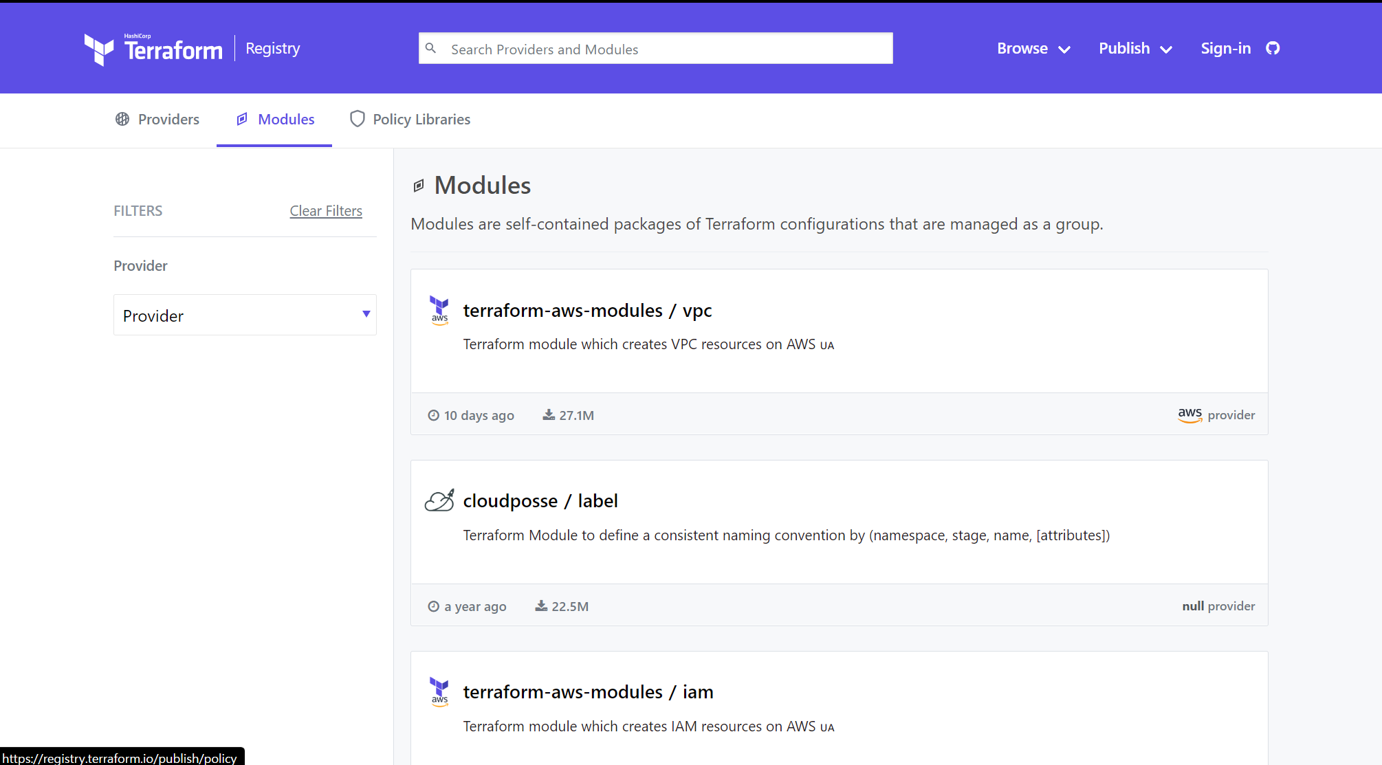 TerraForm 모듈로 가게 된다면 다른 사람들이 정의 해놓은 모듈도 볼 수 있다.