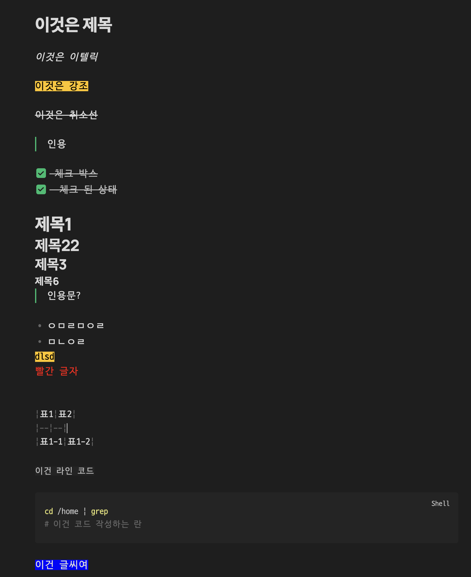 하지만, Obsidian은 완벽하게 Markdown을 지원하며 모든 문법이 동일합니다.