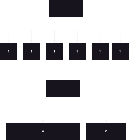 만약 6개의 공통점이 있다면, 처음부터 1개씩 1개씩 나워서 6개의 가지를 치기 보단 처음부턴 3:3 혹은 4:2 정도로 나눕니다.