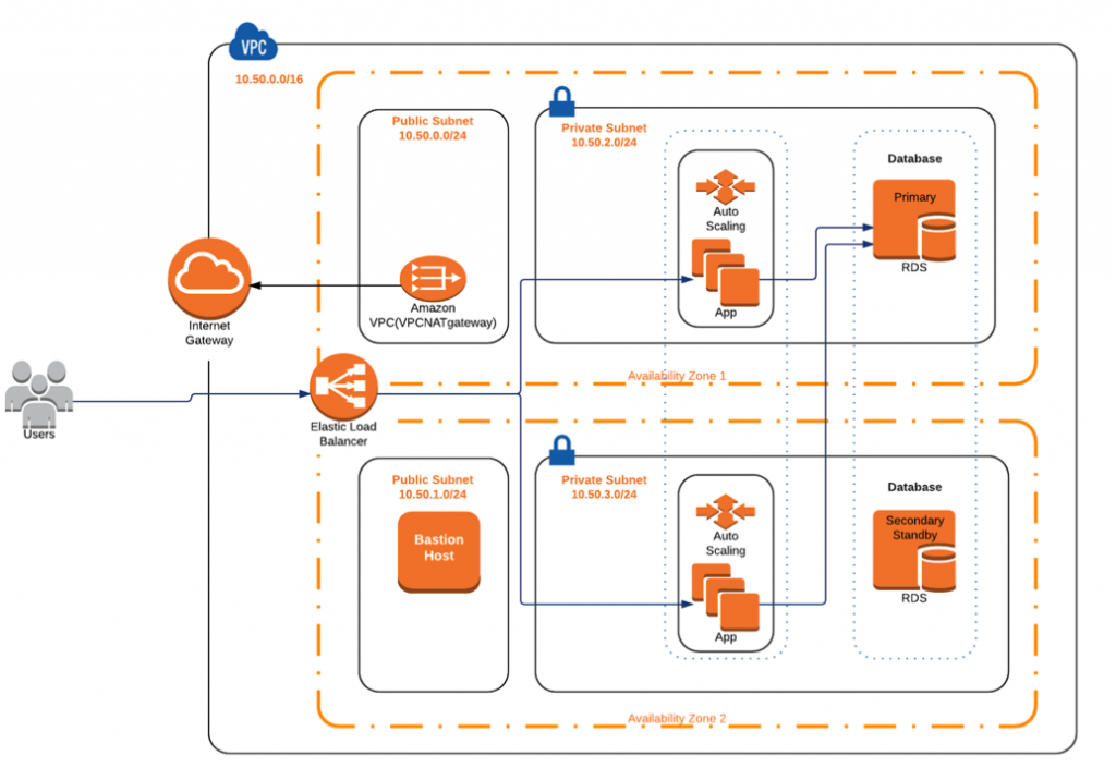 Amazon EC2 인스턴스 및 Amazon RDS에 여러 가용 영역을 사용합니다.