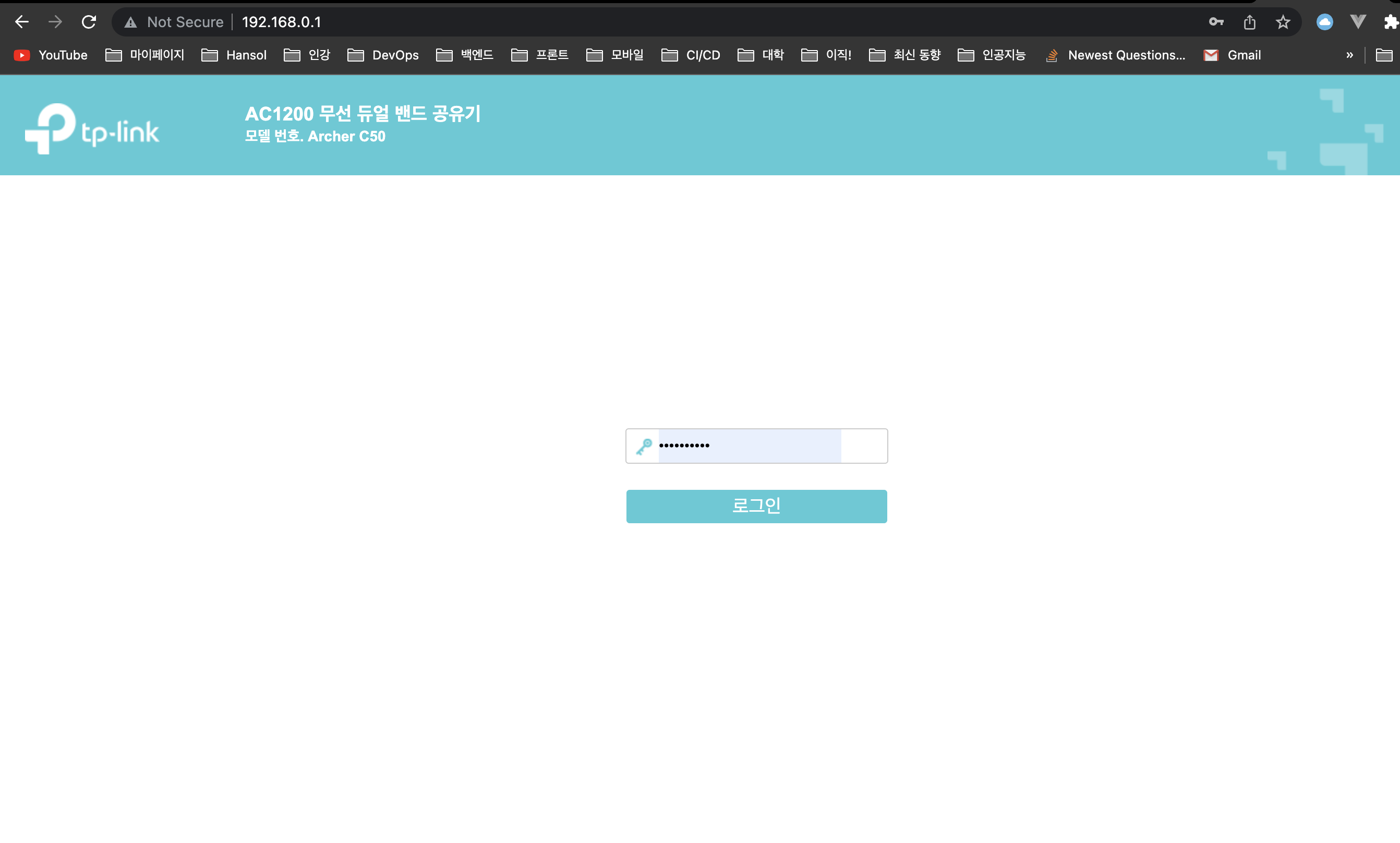 우선 본인의 공유기의 admin 페이지로 들어갑니다.