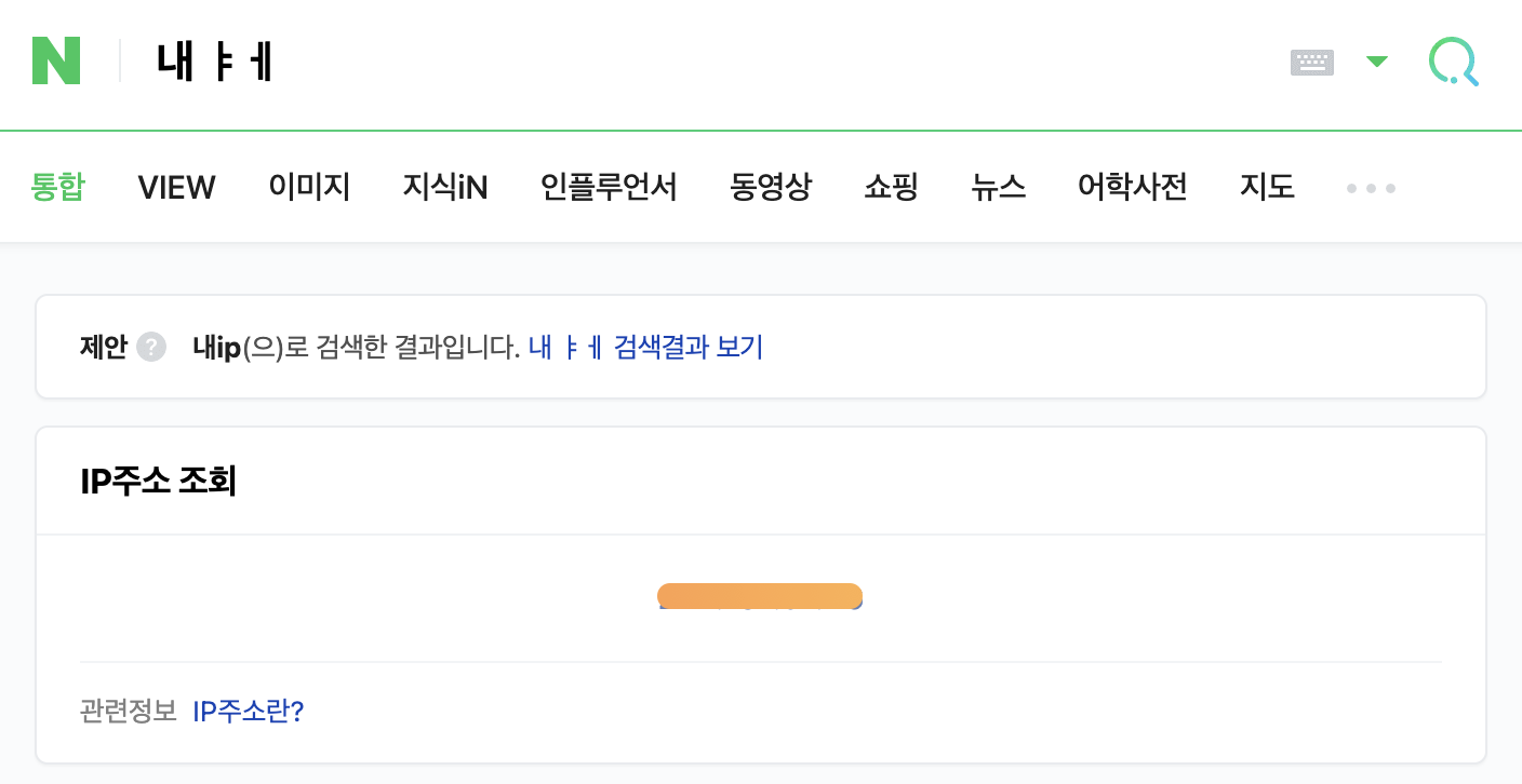 그냥 네이버에 내 IP라고 검색하면, 잘 뜹니다 ㅎㅎㅎ