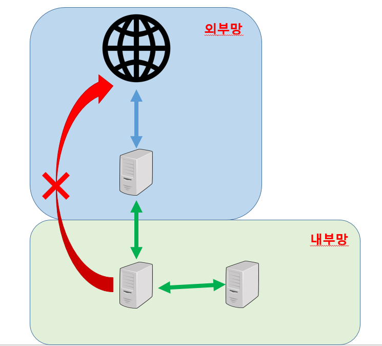 위의 그림처럼 외부에 있는 제가 내부망으로 바로 다이렉트로 들어가지 못합니다.